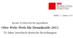 Vor 50 Jahren haben Deutschland und Israel offiziell diplomatische Beziehungen aufgenommen. Aus diesem Anlass hat die SPD-Bundestagsfraktion einen Kreativwettbewerb für Jugendliche ausgeschrieben. Den Gewinnerinnen und Gewinnern winken Geldpreise und eine Einladung nach Berlin, wie der SPD-Bundestagsabgeordnete Andreas Schwarz mitteilt.